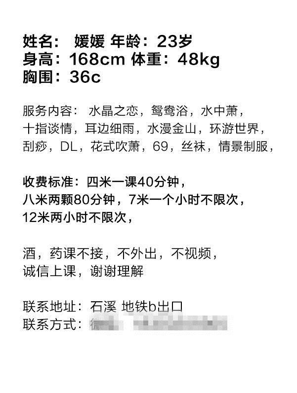 服务好,莞式全套,最重要身材特别好,跟她联系!她会发课表给你,可接吻
